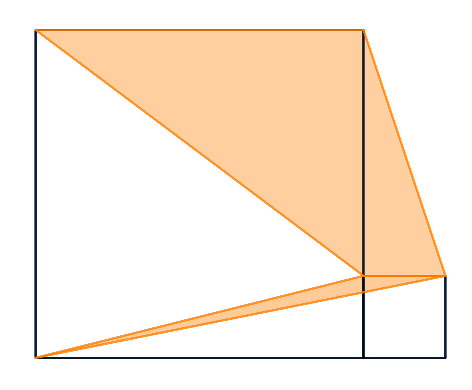 En la figura següent tenim dos quadrats, el més gran amb àrea $2$. En color taronja, hi dibuixem un trapezi i un triangle.