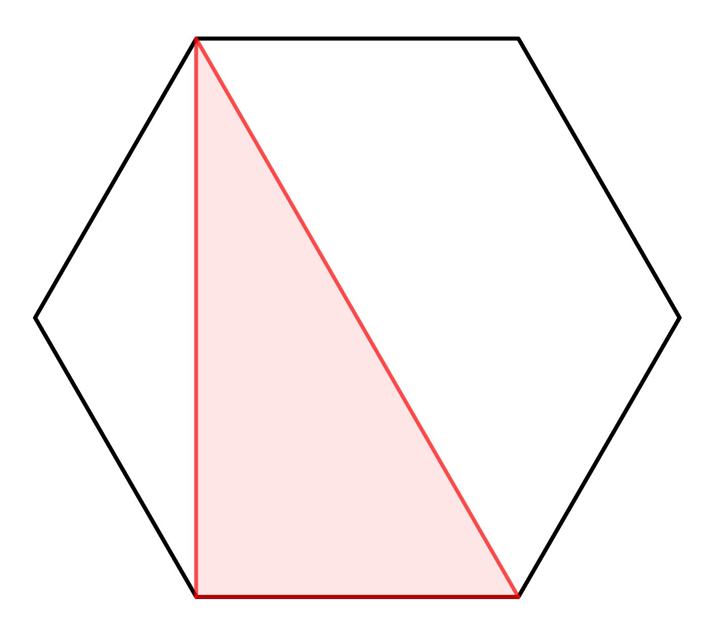 Tenim un hexàgon regular de costat $1$. Dels $6$ possibles vèrtexs en triem $3$, i els unim dibuixant un triangle.