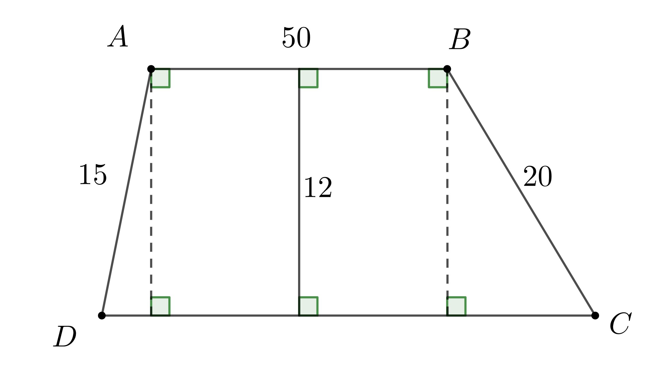 Si dividim el trapezoide en dos triangles i un rectangle així: